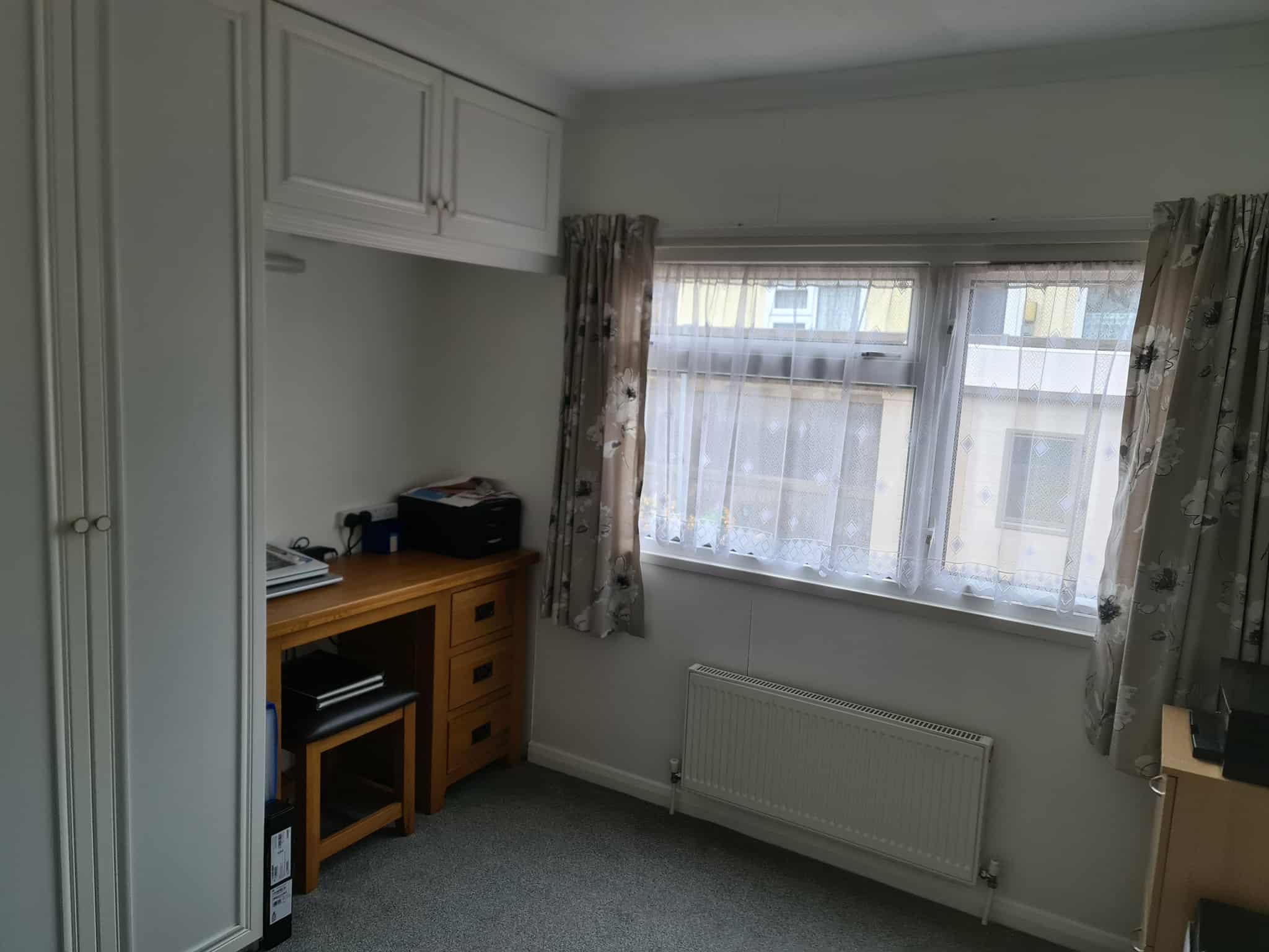 BEDROOM 2- 10’ x 9’9, 2 double wardrobes, cupboard, panelled radiator, power points, wall light points, carpeting