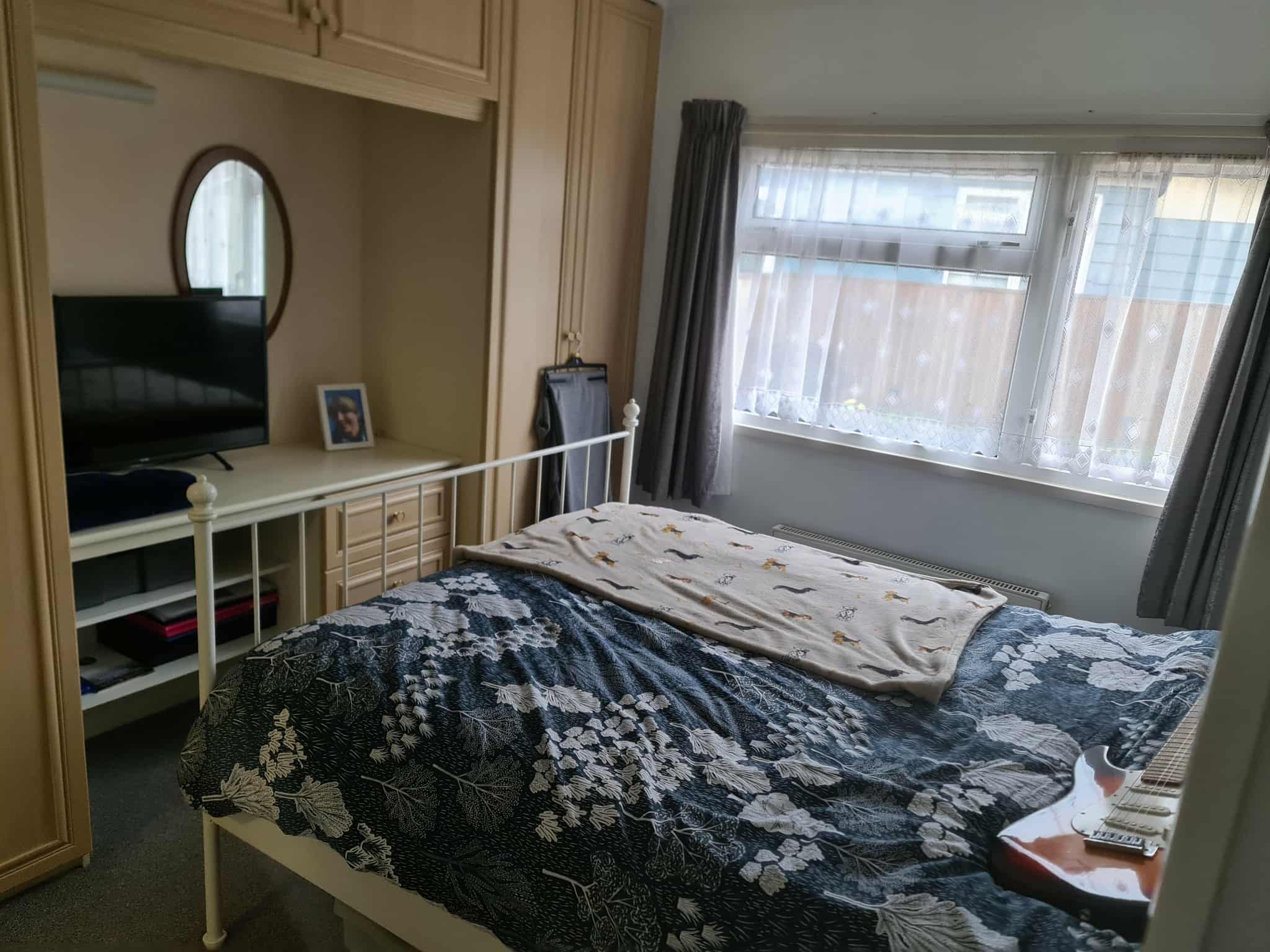 BEDROOM 1- 11’3 x 9’6, wall to wall range of light oak coloured bedroom furniture with wardrobes, dresser unit, mirror, strip light and cupboard over, panelled radiator, power points, 2 bedside cabinets, wall light points