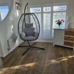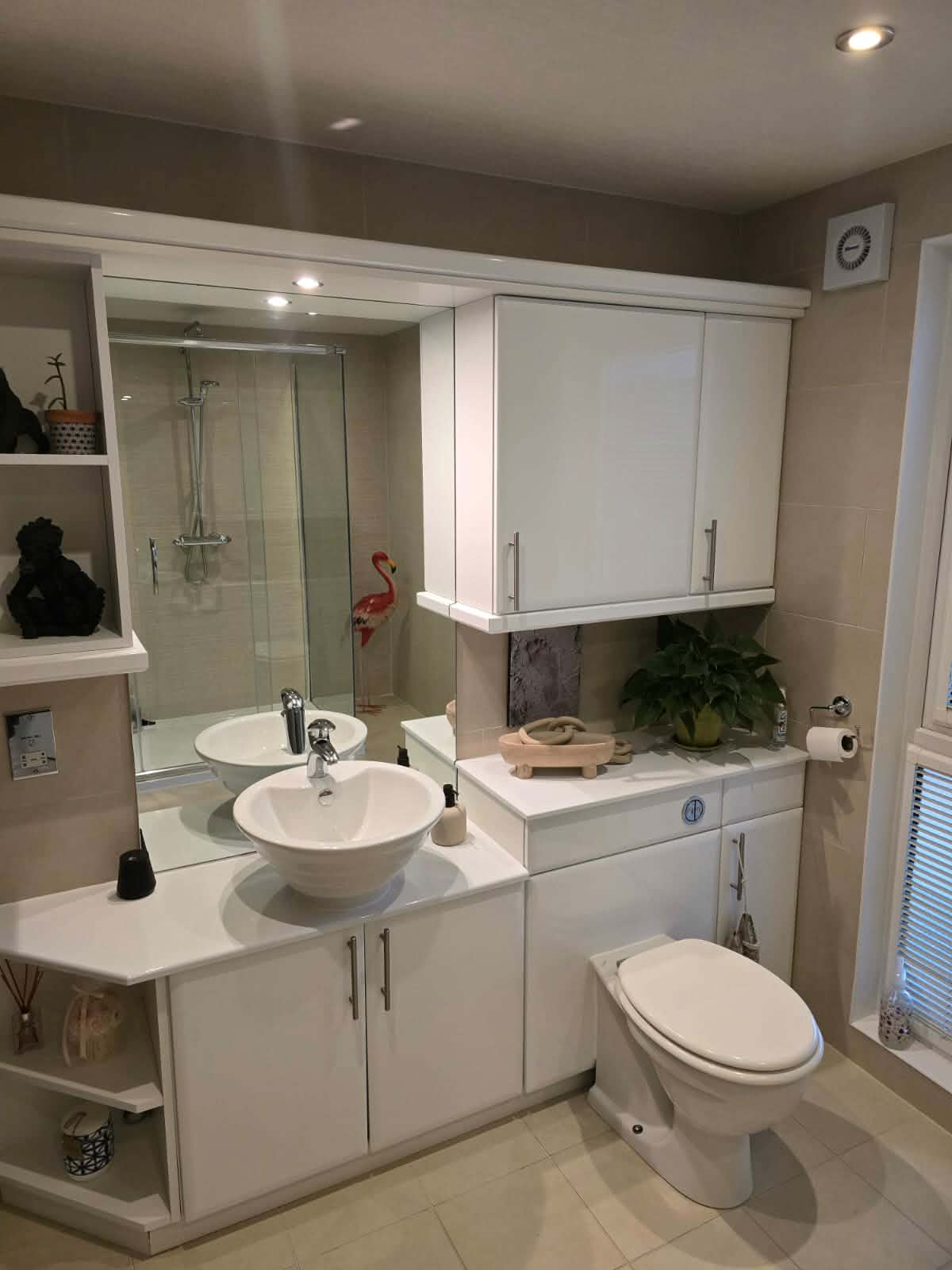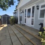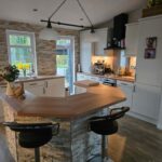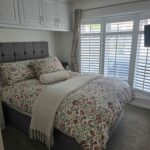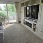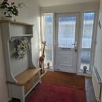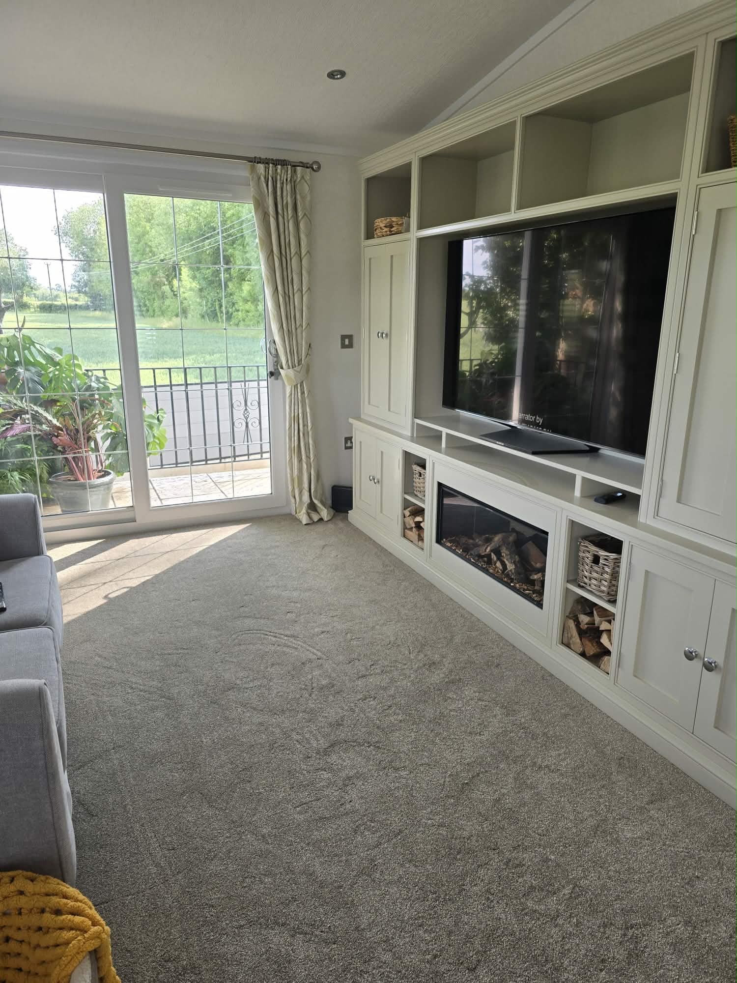 LOUNGE- 20’ x 11’, this features lovely living area with recently fitted carpets, Farmhouse beaded Shaker wall media unit with New Forest black edition electric log fire, dimmer light switch, TV point, ample power points, 2 double panelled radiators, recently fitted shutters, patio doors to garden