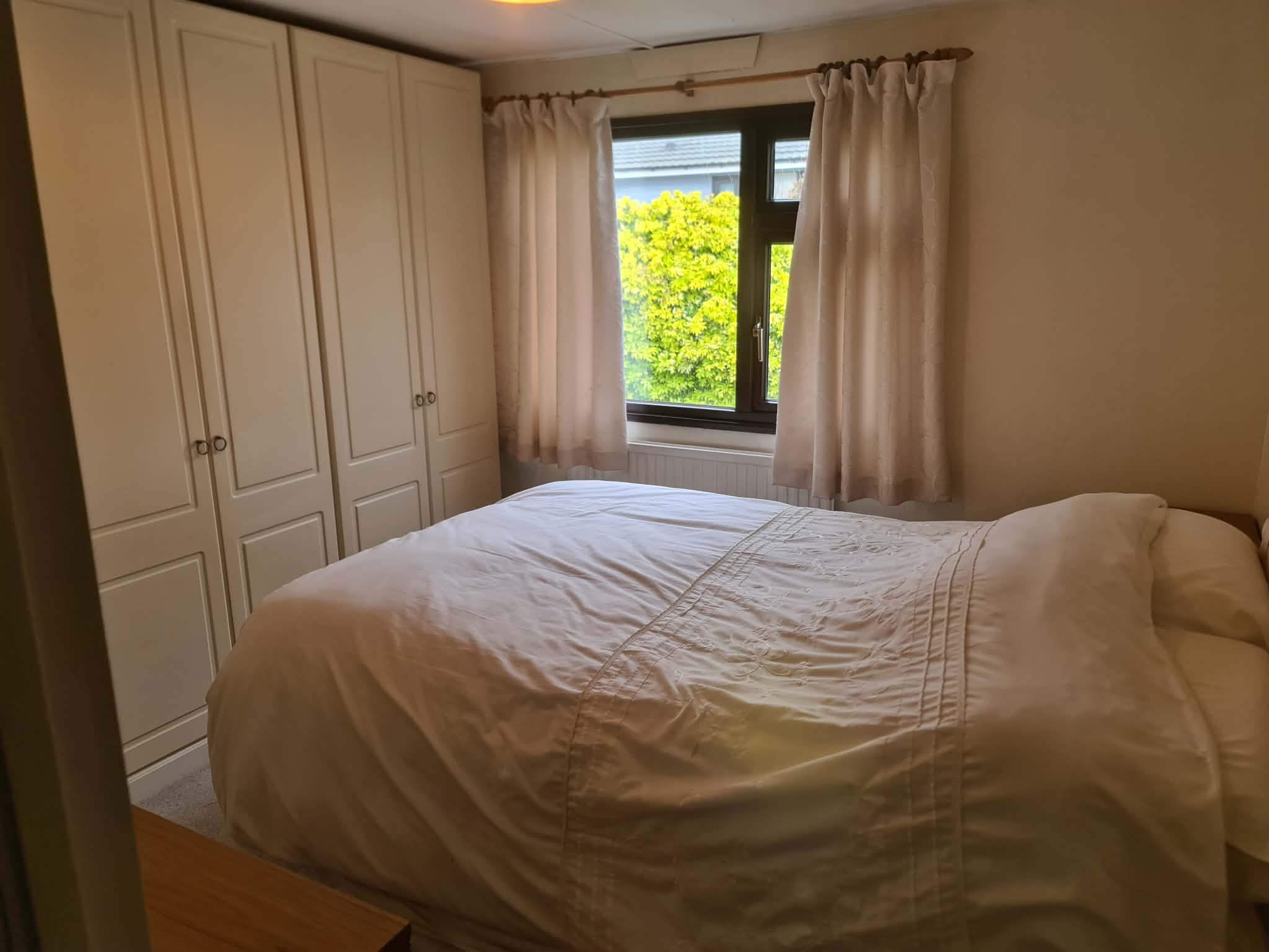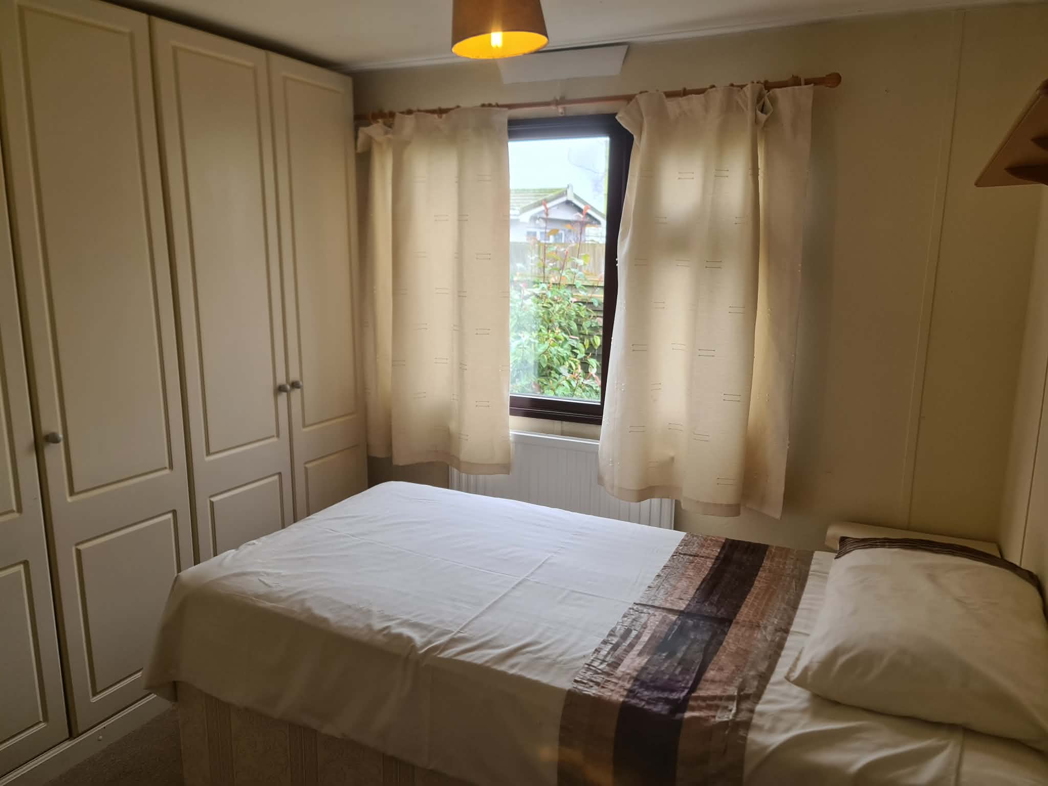 BEDROOM 2- 7’6 x 7’3, excluding wardrobe space, wall to wall range of wardrobes with hanging space and shelving, panelled radiator, power point