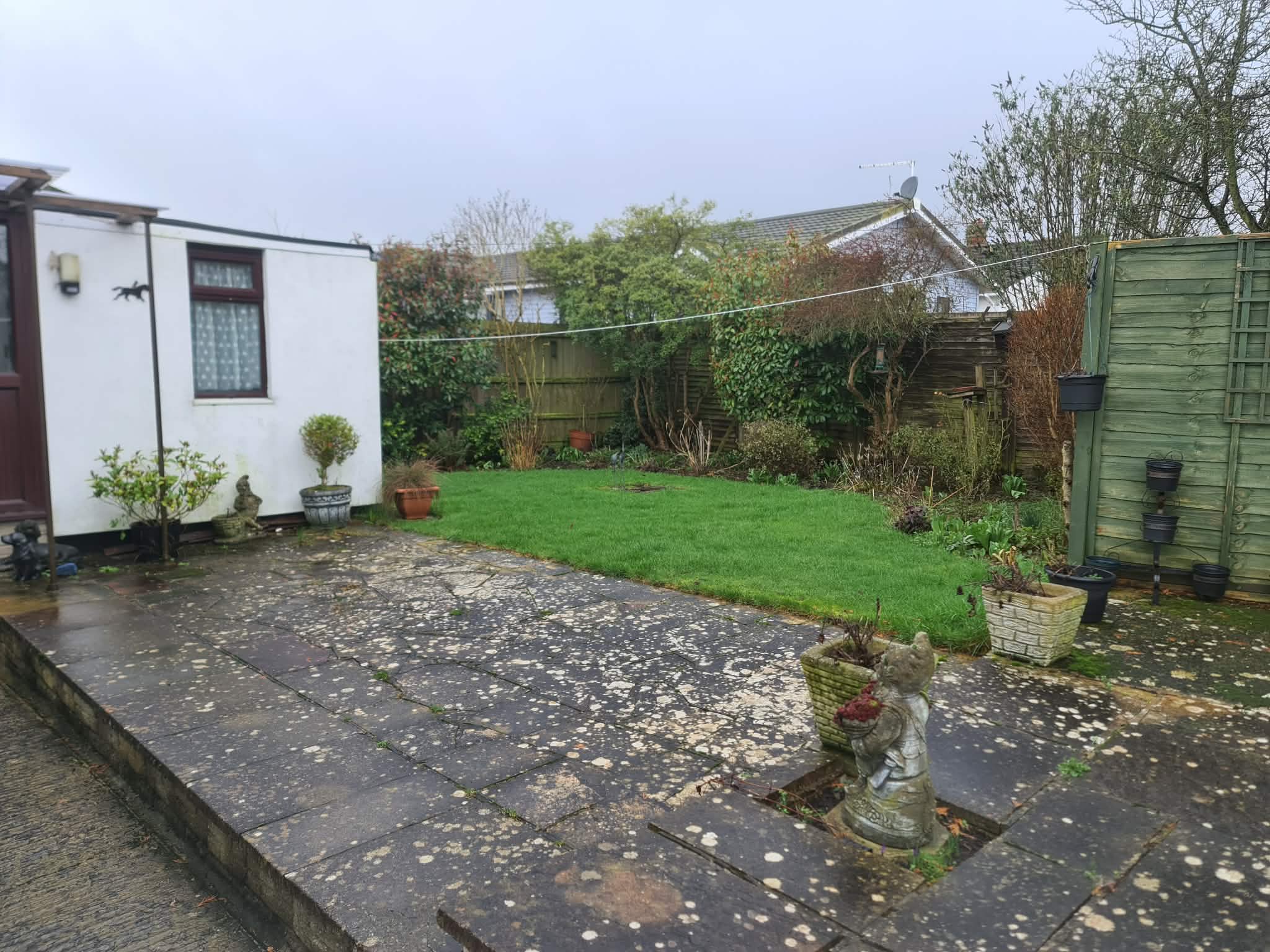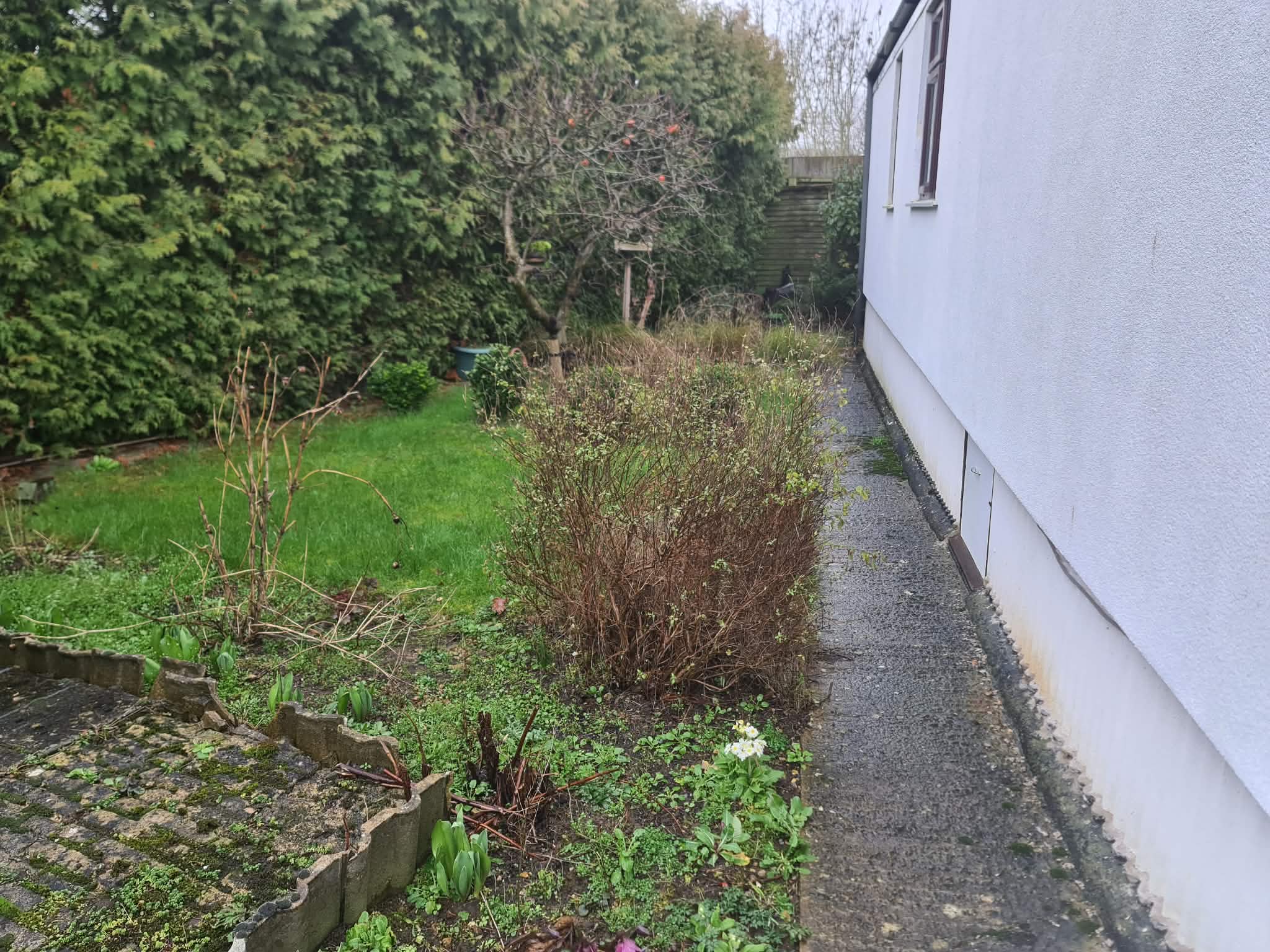GARDENS- Approximately 65’ x 60’ overall (irregular shape), extensive lawn areas, paved patio, shrub and flower beds, garden shed, outside light, outside tap, all well secluded behind high fencing and hedging, communal car parking to front