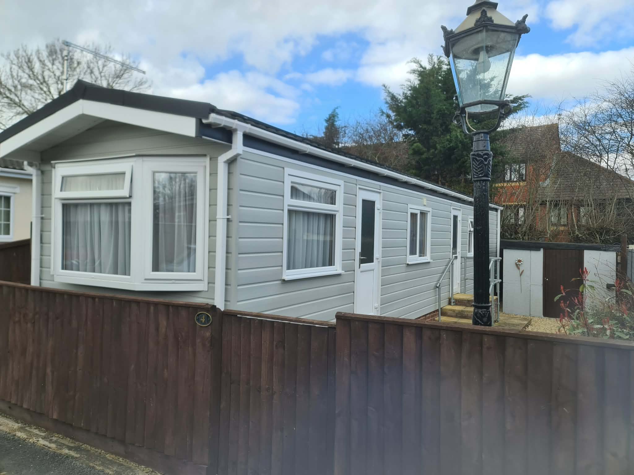 A MUCH IMPROVED AND UPDATED 1988 HOMESEEKER CHILTERN 42’ X 10’ SINGLE UNIT ON ESTABLISHED PRIVATE PARK, WITHIN WALKING DISTANCE OF DIDCOT TOWN CENTRE AND 12 MILES SOUTH OF OXFORD. HALL, LOUNGE, KITCHEN, 2 BEDROOMS, DISABLED-FRIENDLY WET ROOM, MAINS GAS RADIATOR CENTRAL HEATING VIA COMBI BOILER, RECENT RE-WIRING AND INSULATION UPGRADE WITH EXTERNAL PANELLING, UNDER CHASSIS INSULATION, INSTALLATION OF SOLAR PANELS, RECENTLY INSTALLED DOUBLE GLAZING, DECRA STYLE ROOF, BRICK BUILT SKIRT, LOW MAINTENANCE GARDENS