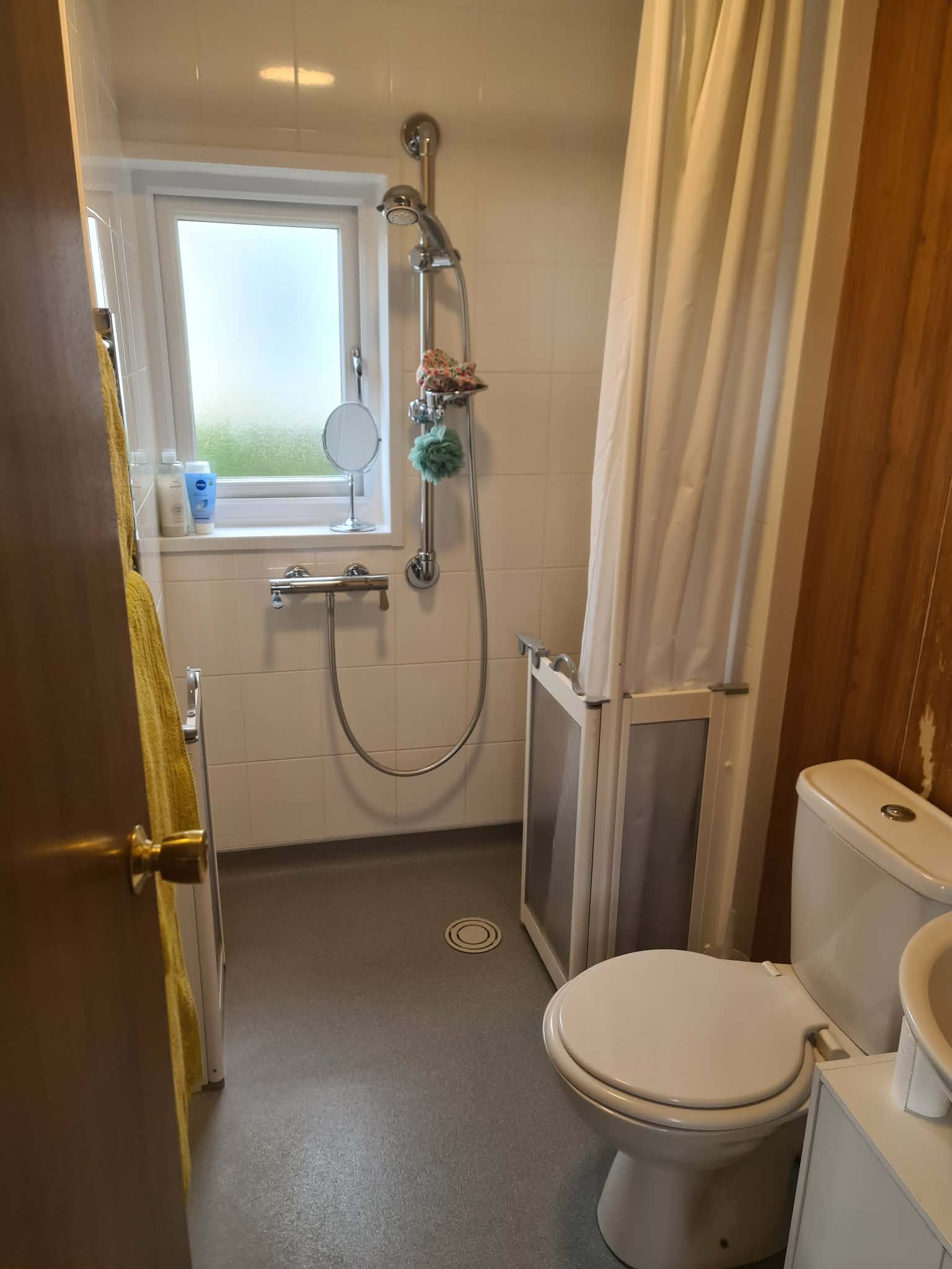 DISABLED-FRIENDLY WET- ROOM- low fitting shower and supports, low level WC, hand basin